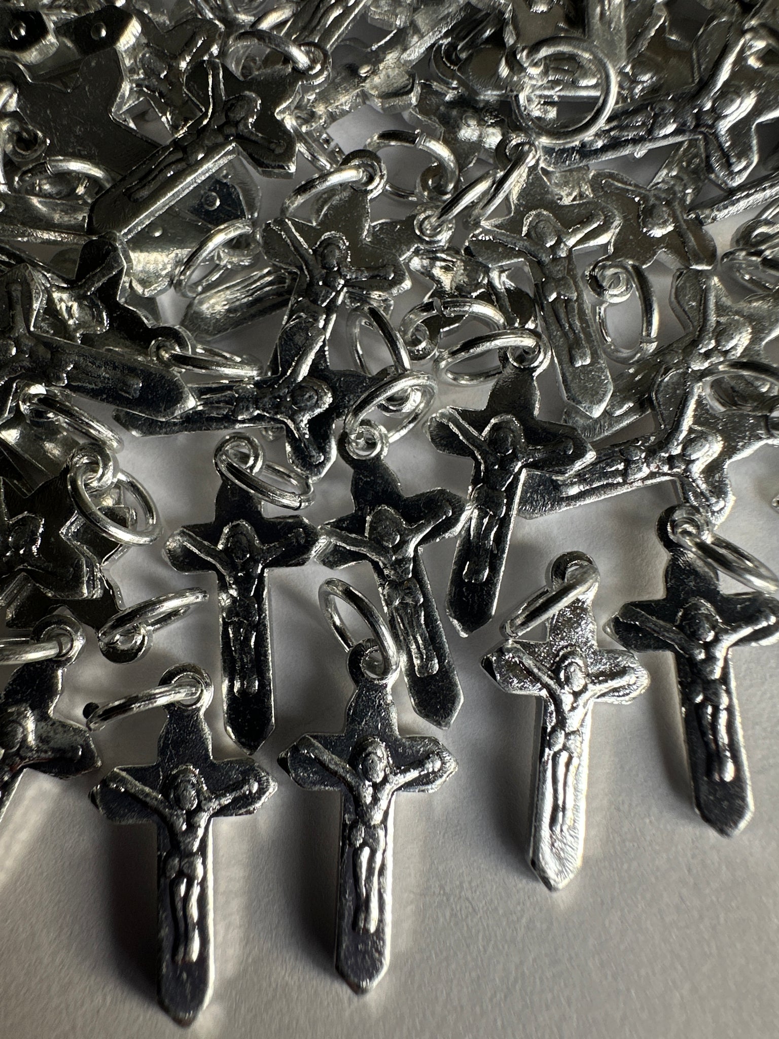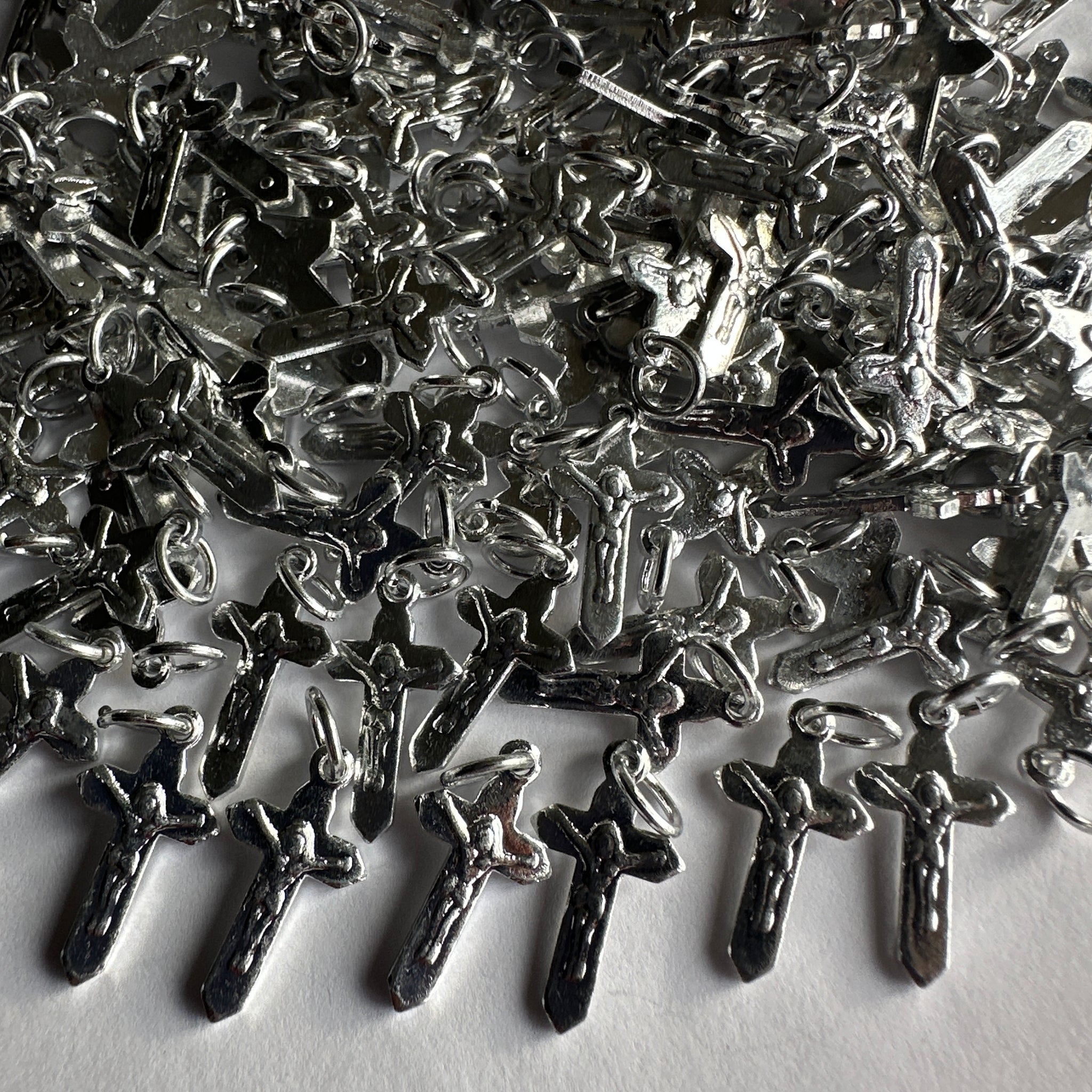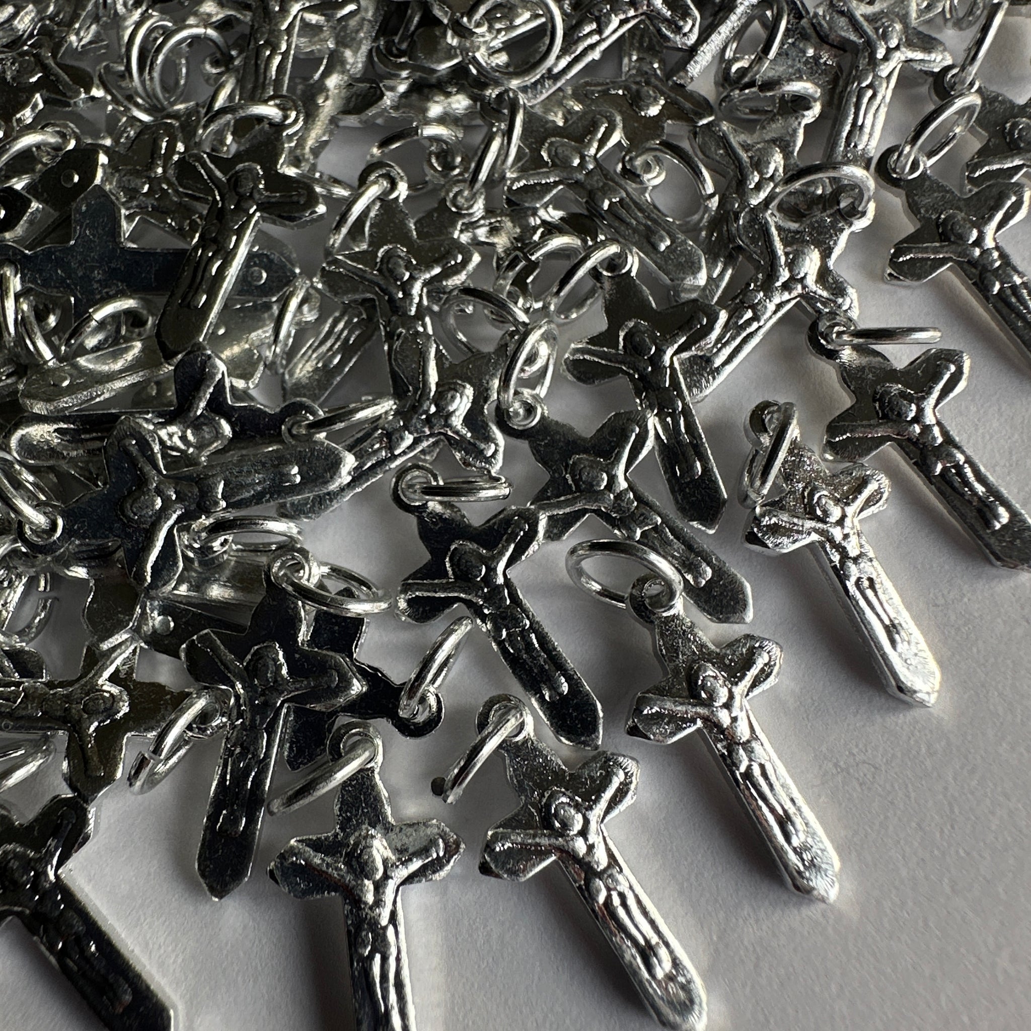 10pcs 20pcs SPIRITUAL SILVER CROSS Crucifix 20mm x 11mm Jesus Christ on the cross.